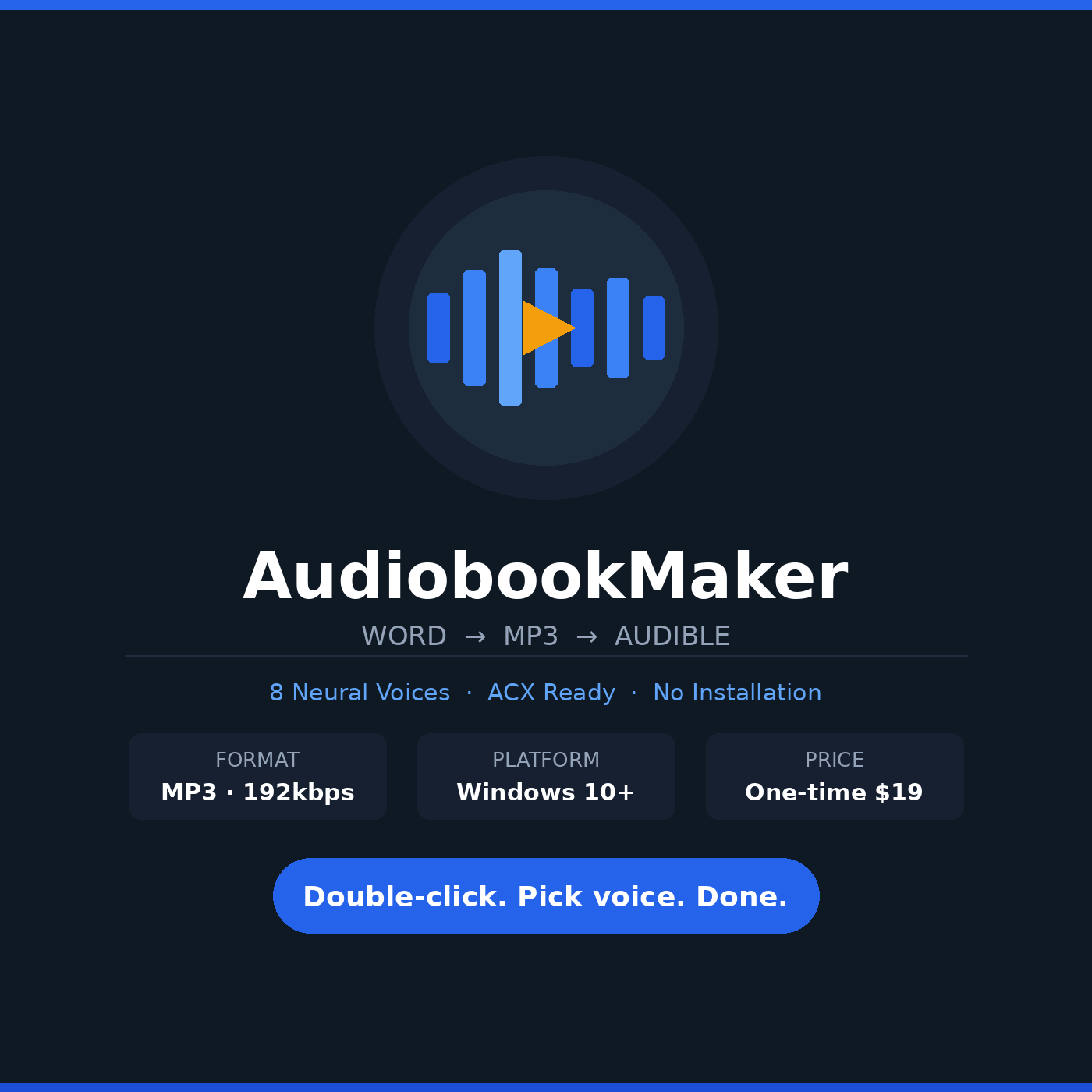Turn any Word document into a professional audiobook MP3 — in minutes.