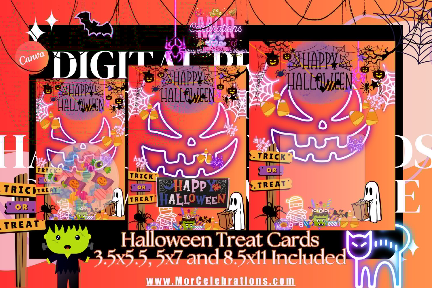 Transform your Halloween celebrations with our Halloween Treat Card from MorCelebrations! This digital design can be customized in Canva to match your spooky style, allowing you to change or add elements, or keep it as is.