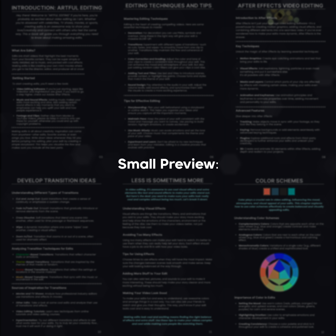By the end of this e-book, you'll have learned practical techniques in various topics and a way of creative thinking that set your edits apart and improve their quality. Whether you're editing for fun or aiming to build an online presence, this guide will help you achieve your goals.