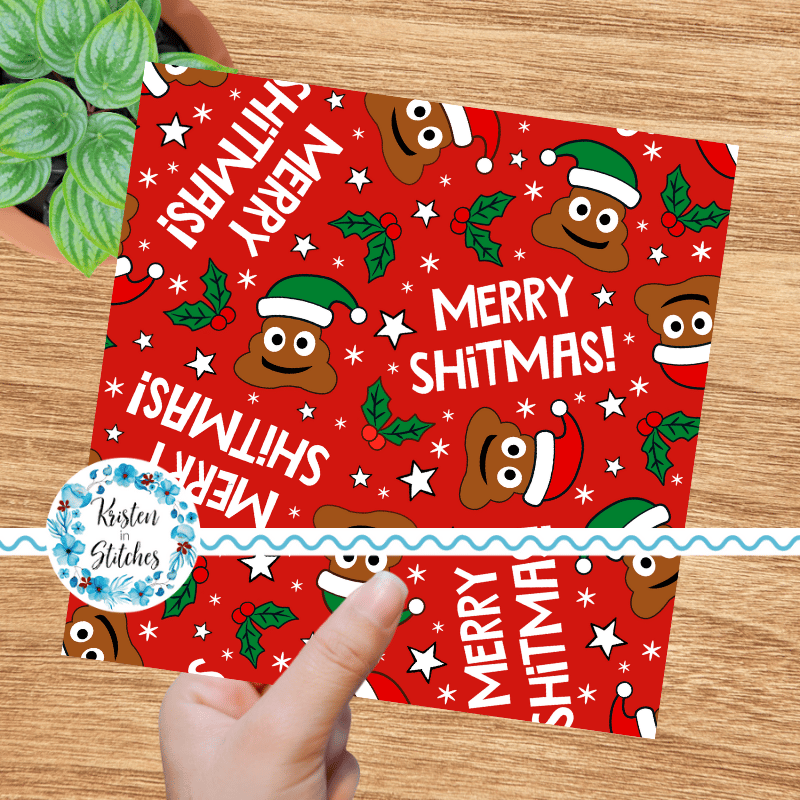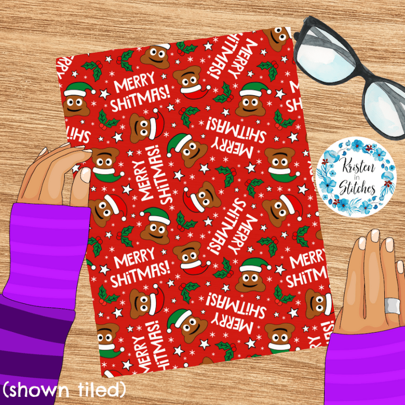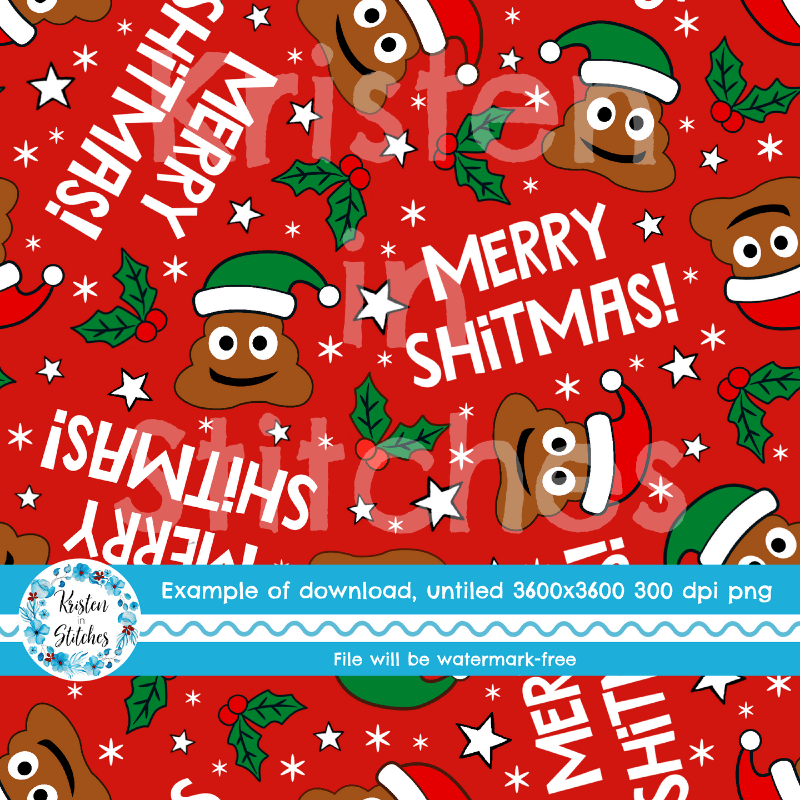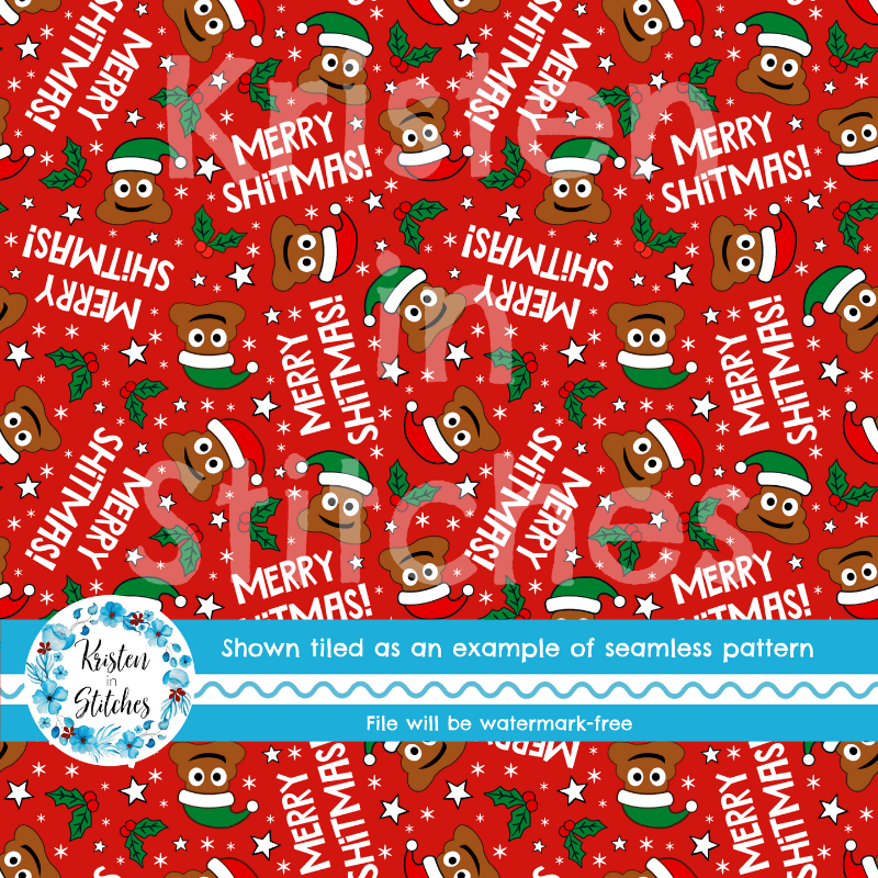 Merry Shitmas Christmas Poop Emojis Santa Hats Sarcastic Christmas Seamless Pattern