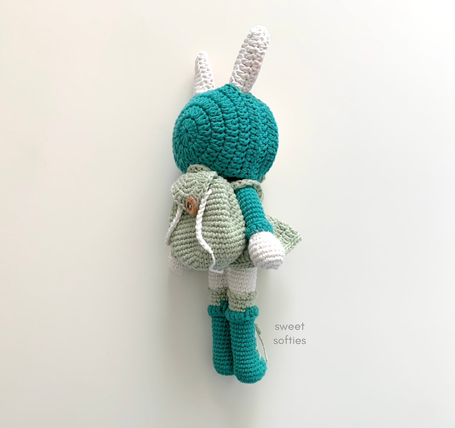 This pattern is © 2021 Sweet Softies. For personal use only. You may not translate, copy, alter, or sell this pattern in any way. You may not make a video or teach a class using my patterns without my written consent. You may sell finished items made with this pattern if you credit Sweet Softies as the designer and link to my blog (www.sweetsofties.com). No wholesale.