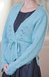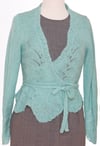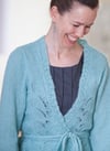 Wrap yourself in timeless style when you wear this ethereal ballet-style sweater. Knit from the bottom up, the pattern begins with a softly textured trim of twisted stitches that unfurls into a striking back panel. You’ll love watching the graceful Eyelet Leaves pattern undulate and swoop along the fronts as you knit. The sleeves gently taper to form a delicate and feminine flounce at the wrist. Finish this stunning project with ties that flatter any body type and enjoy the envious looks you’re sure to encounter.