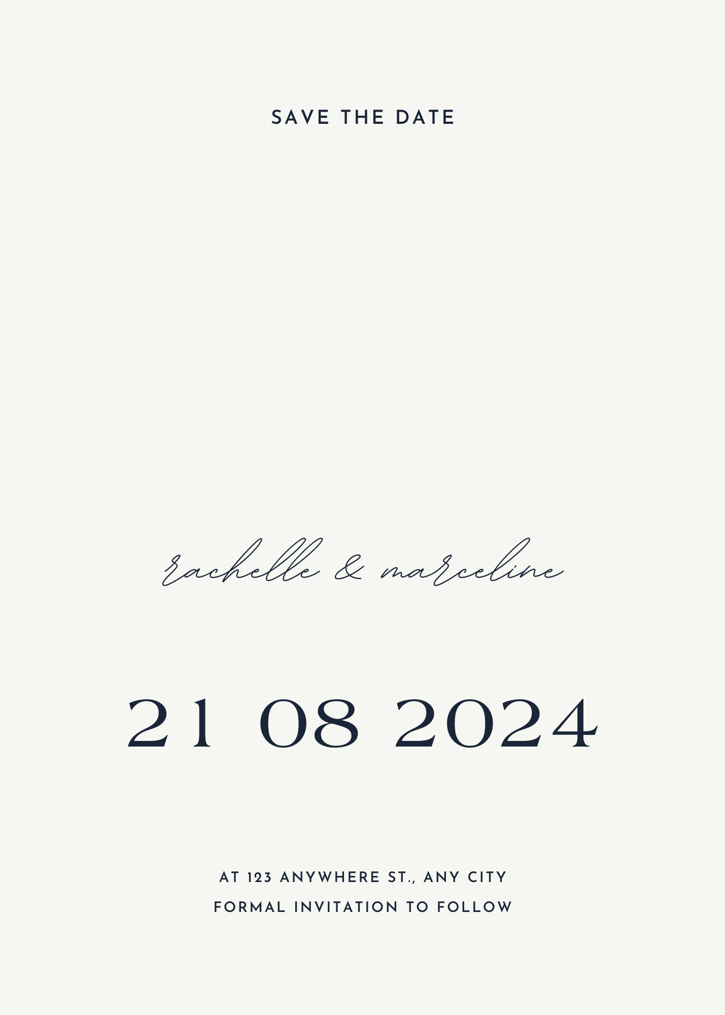 Elegant, minimalist Save the Date card template—fully editable in Canva.