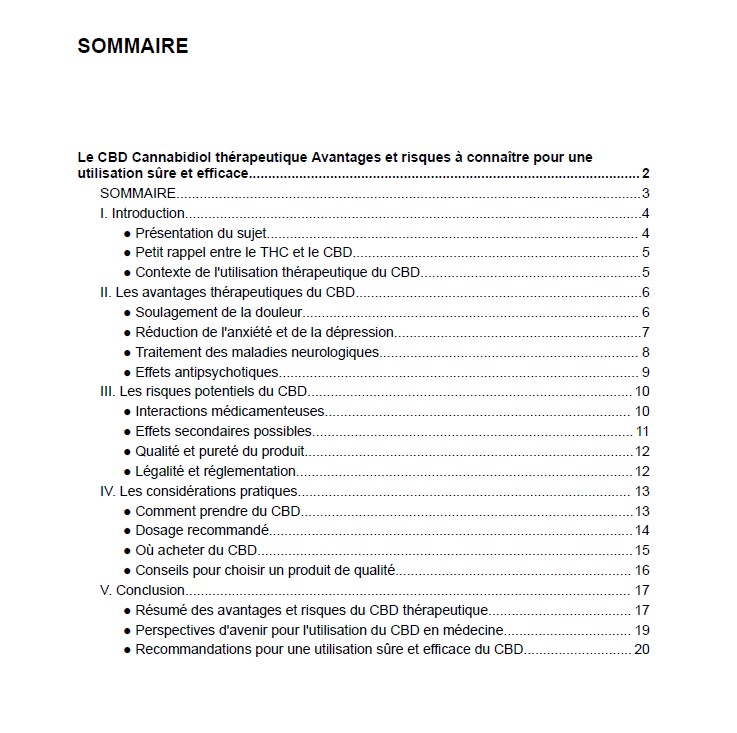 Enfin, nous avons donné des conseils pratiques pour choisir du CBD de qualité, ainsi que des recommandations pour une utilisation sûre et efficace du CBD. En conclusion, le CBD offre un potentiel intéressant en tant qu'option de traitement naturelle, mais il est important de prendre en compte les risques et de suivre les recommandations pour une utilisation sûre et efficace.