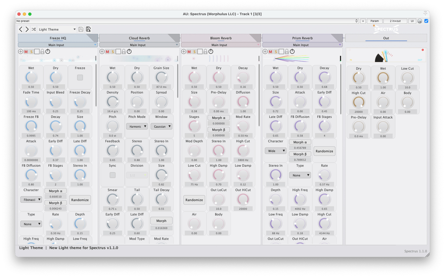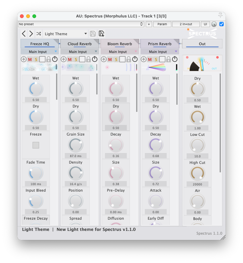 - Prism, Bloom, Ember, Shimmer, Freeze, Velvet Room, Velvet Hall, Glacier, and Cloud Reverb