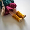 Fern the Autumn Doll is a no-sew amigurumi pattern that stands at 9 inches in height. Fern comes with removable clothing and accessories, including: hair cap, pixie bonnet, sweater, dress, crossbody bag, and boots. This doll set offers a lot of dress-up and pretend play fun for little girls and boys, and would make a lovely birthday gift or Christmas holiday present. Fern’s pattern is suitable for intermediate crocheters who are familiar with crocheting amigurumi dolls.