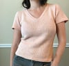 The Seedling Tee, easy to wear, and pair, that fits you just right. A project to be proud of, that makes you feel GOOD in it. A nice everyday V-neck set-in sleeve tee, the seed stitch trim giving it just a little bit of something extra. Pairs well with shorts, jeans, skirts, and as a layering piece under a cardigan.