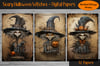 The 12 Scary Witches bring an eerily beautiful touch to any Halloween paper project.