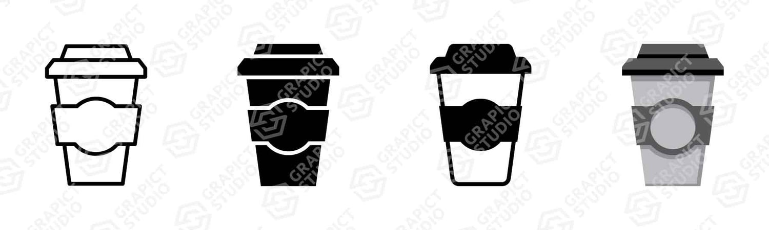 Disposable coffee cup design suitable for websites, print design or app. Creative illustration outlined style, editable stroke and flat glyph style icon. Vector clipart image, graphic design element.