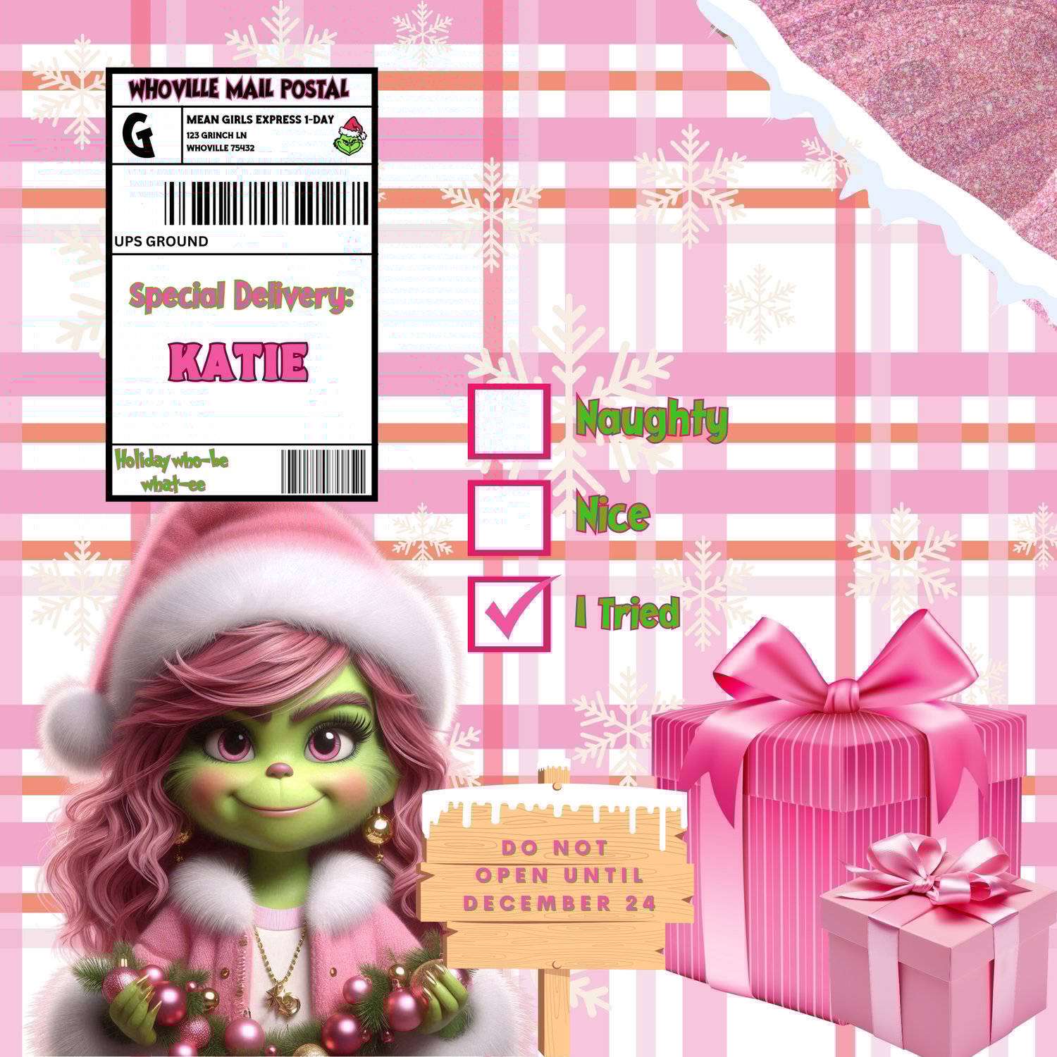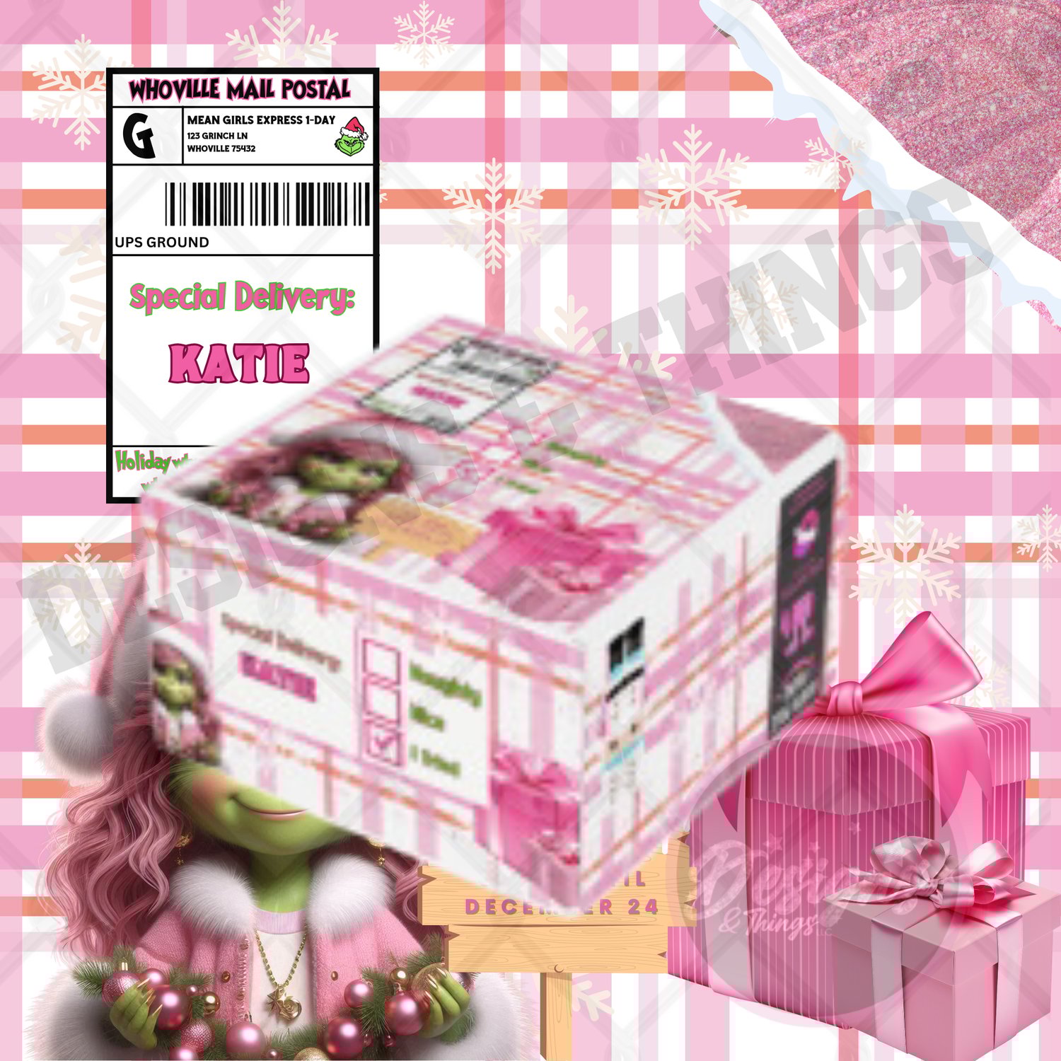 Make your holiday gifting truly unique with this customizable pink present grinch box template—order your digital download today and get started on creating your perfect holiday surprise!