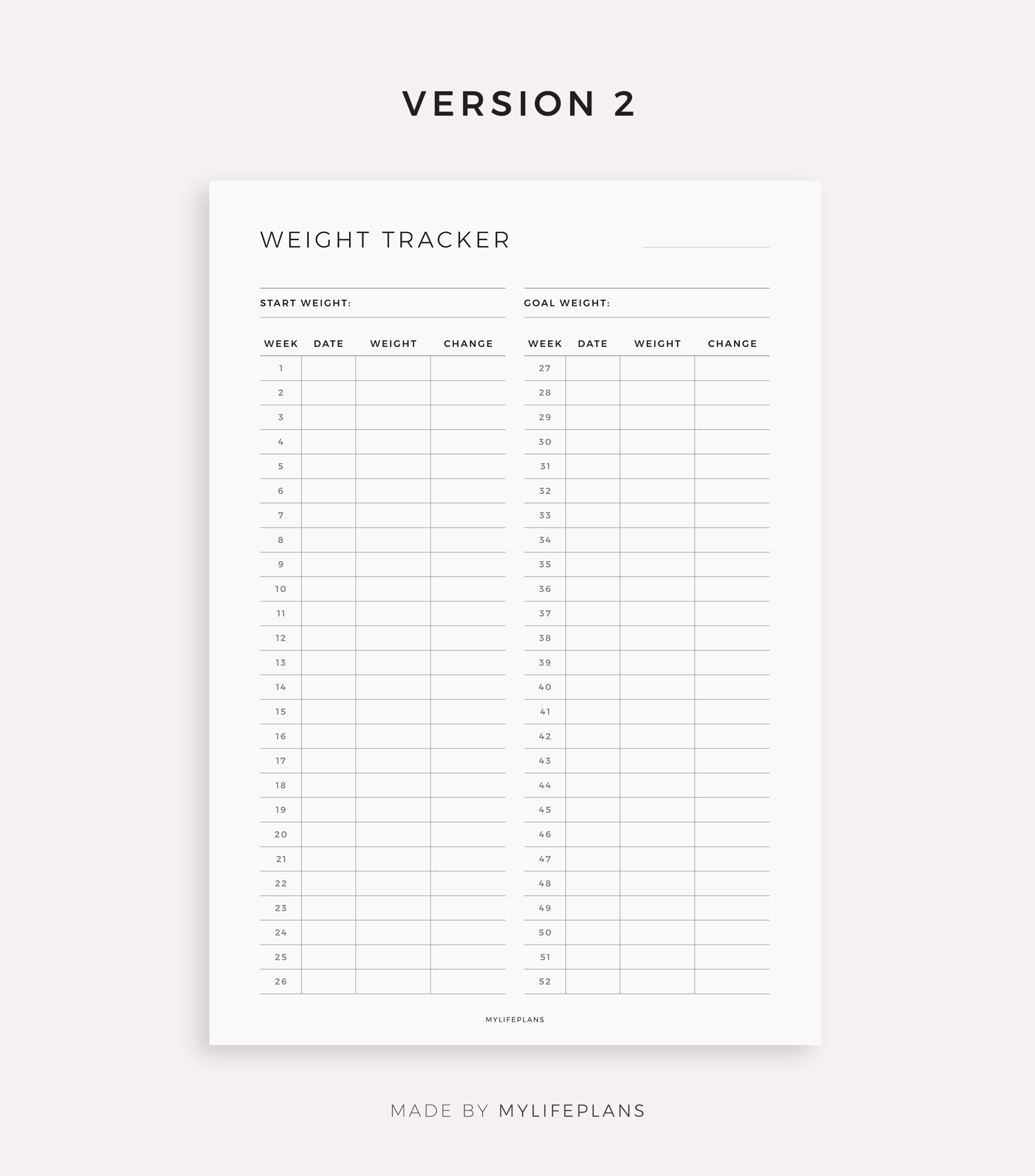 52 Week Weight Tracker Template for Remarkable, Supernote, Kindle Scribe, Boox, Kobo
