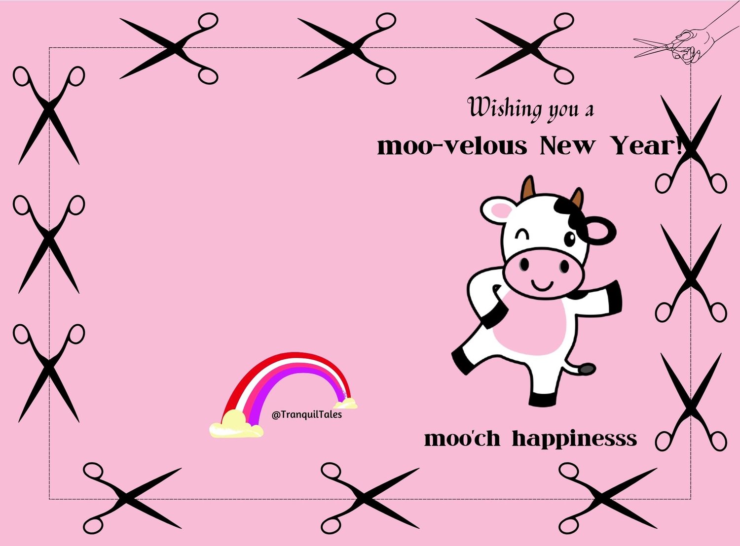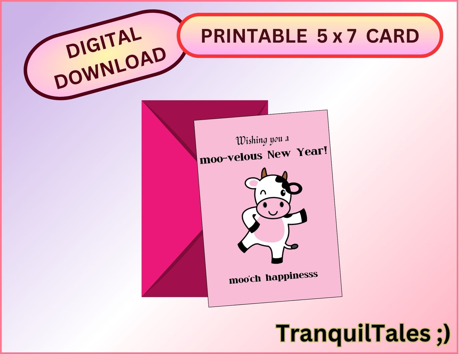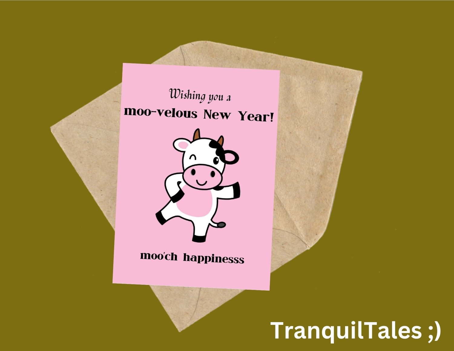Wishing you a moo-velous New Year! moo'ch happinesss Card - 5" x 7" inches - New Year card - PDF File