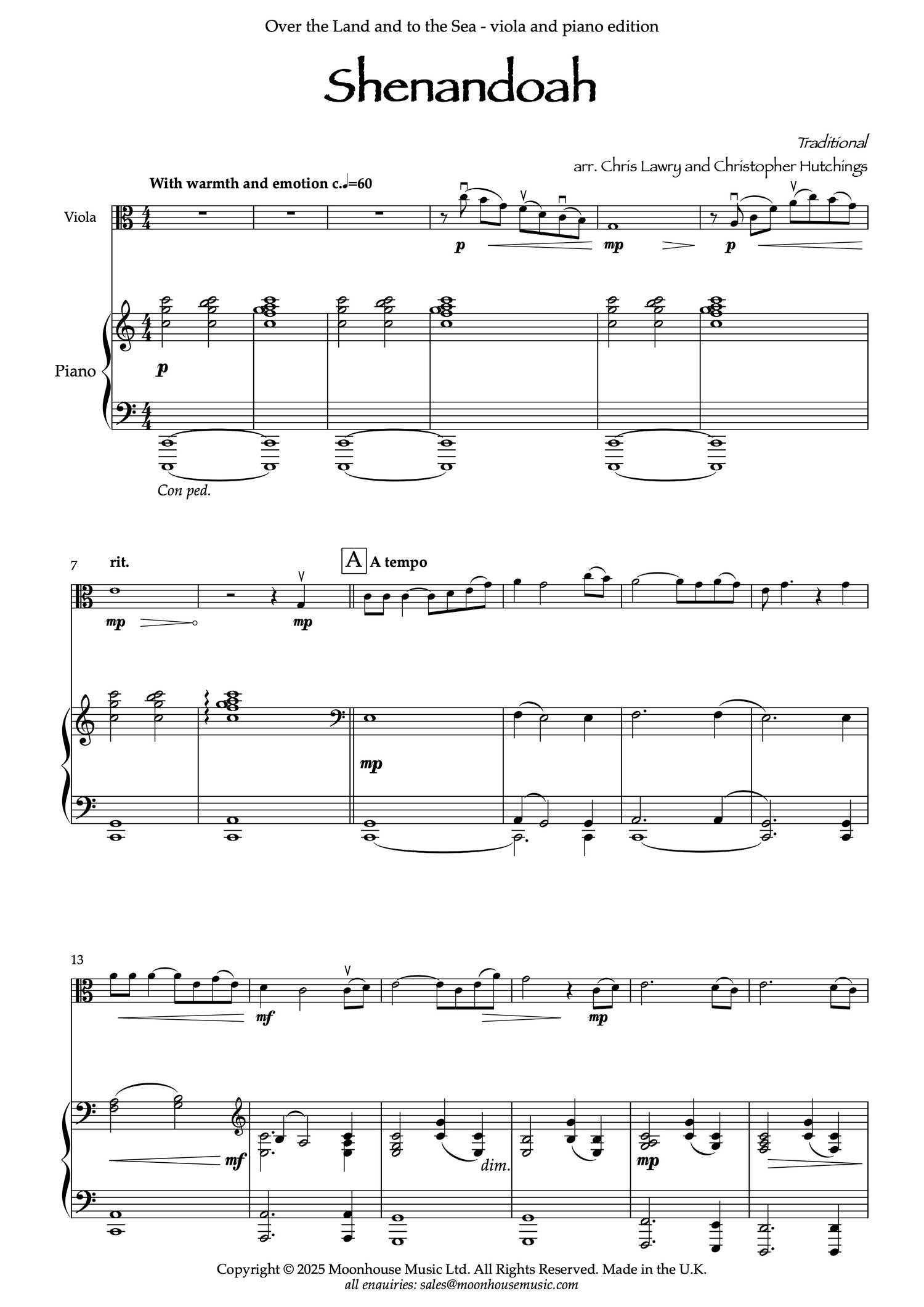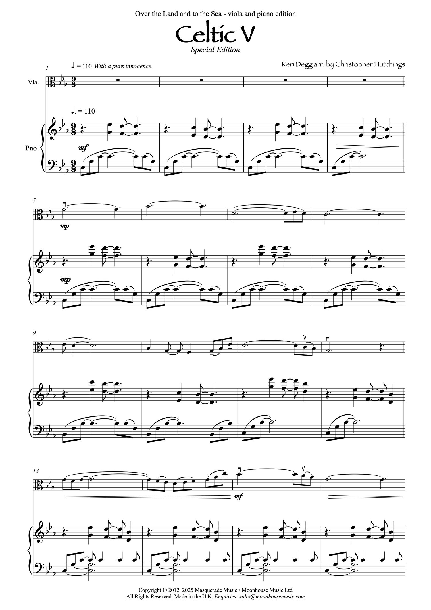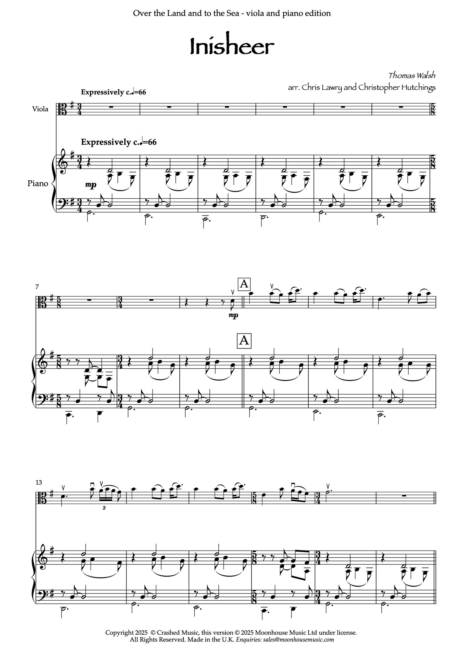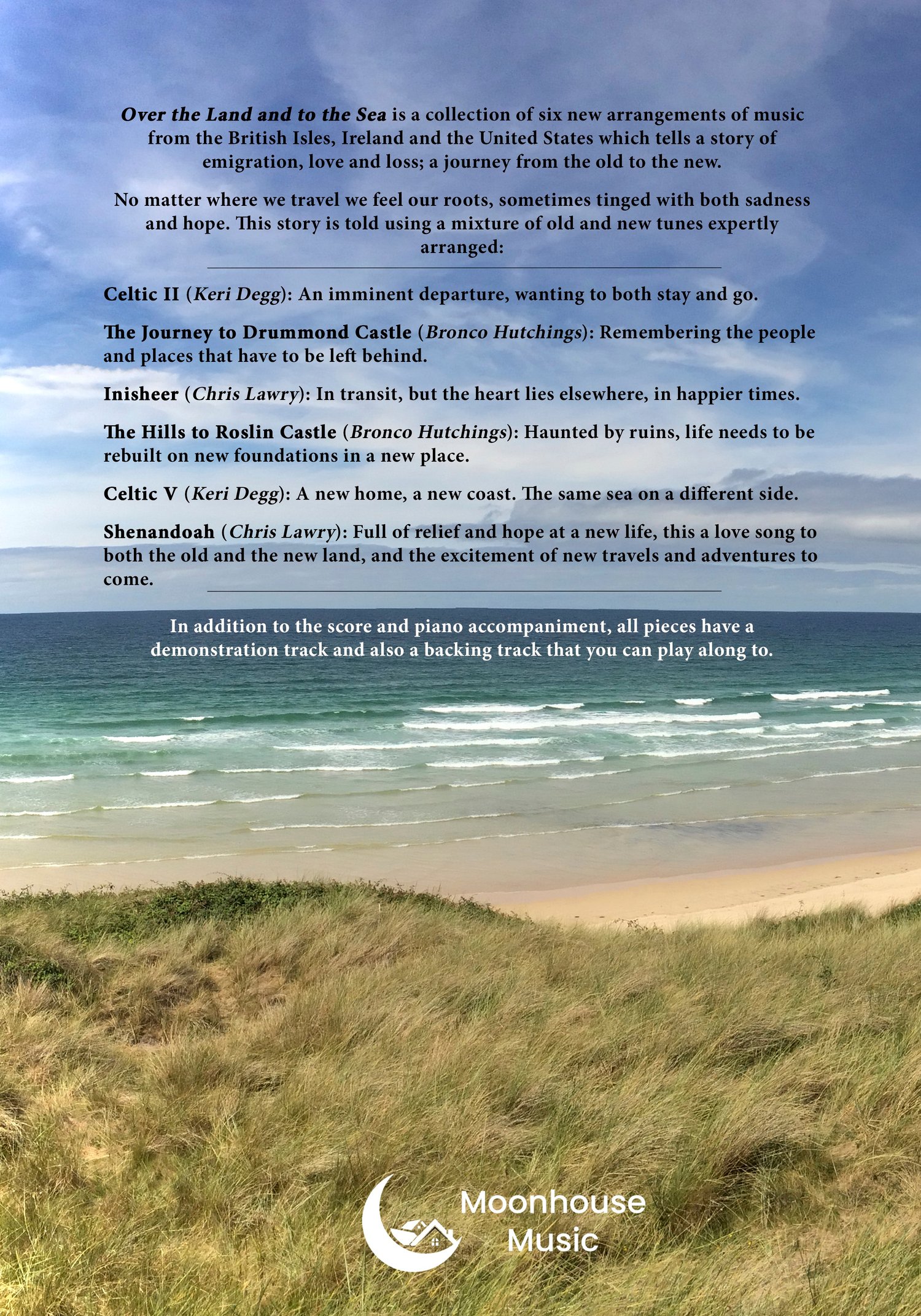 Over the Land to the Sea is a sheet music book from three different composers and arrangers for viola & piano. It's a beautiful collection of folk music from the British Isles, Ireland and the United States which tells a story of immigration, love and loss; a journey from the old to the new.