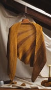 This an asymmetrical triangular shawl, knit from one side to the other, including short row sections in a contrast colour.