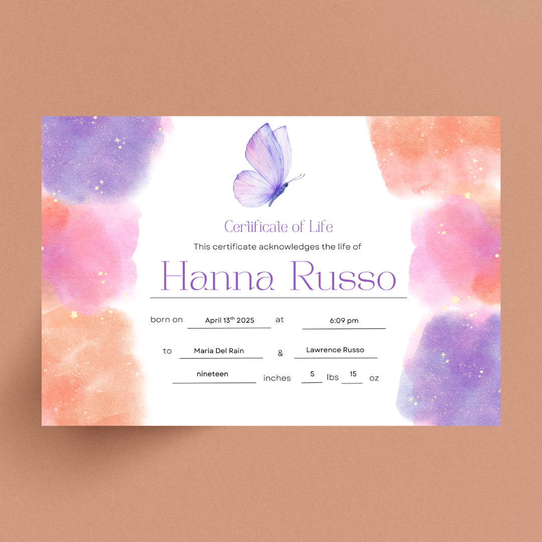Certificate of Life - Sunset Clouds