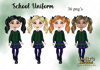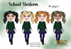 Instant digital download of our Cute School Girl in Navy and Dark Green Tartan Uniformand Pigtails PNG (36 PNG’s included one)