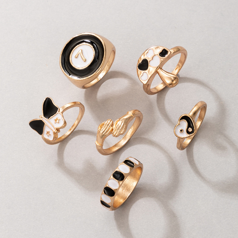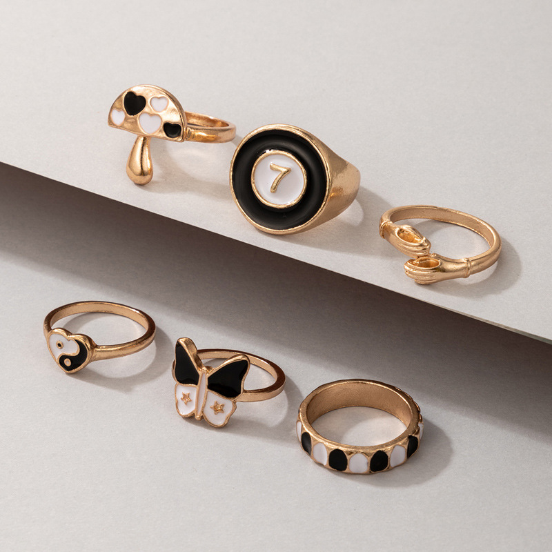 Black Tai Chi Butterfly Mushroom Love Element 6 Piece Rings.