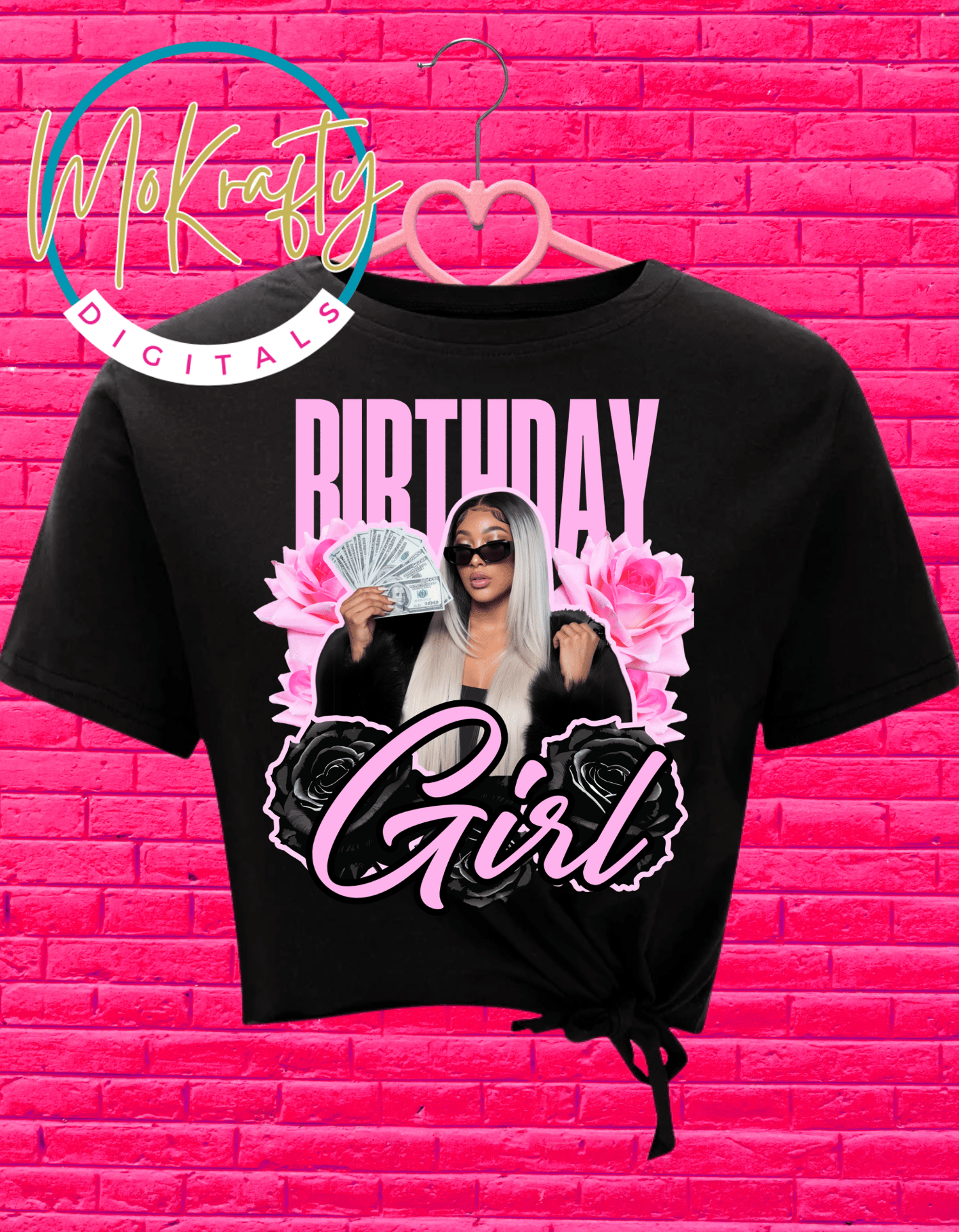 Let the birthday girl shine! This bold, glam-packed editable design is perfect for crafters who want to create head-turning tees, totes, or party gear. Featuring a stylish woman holding stacks of cash, surrounded by pink + black roses, and layered with luxe “Birthday Girl” text — this file is giving rich energy only 💅🏽💖