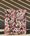 Using a sashed four-patch and a Lattice block from the 1930s, this quilt makes up fun and fast, especially if using Layer Cake precuts. It’s also a good scrappy quilt, if kept to limited palette of colors.