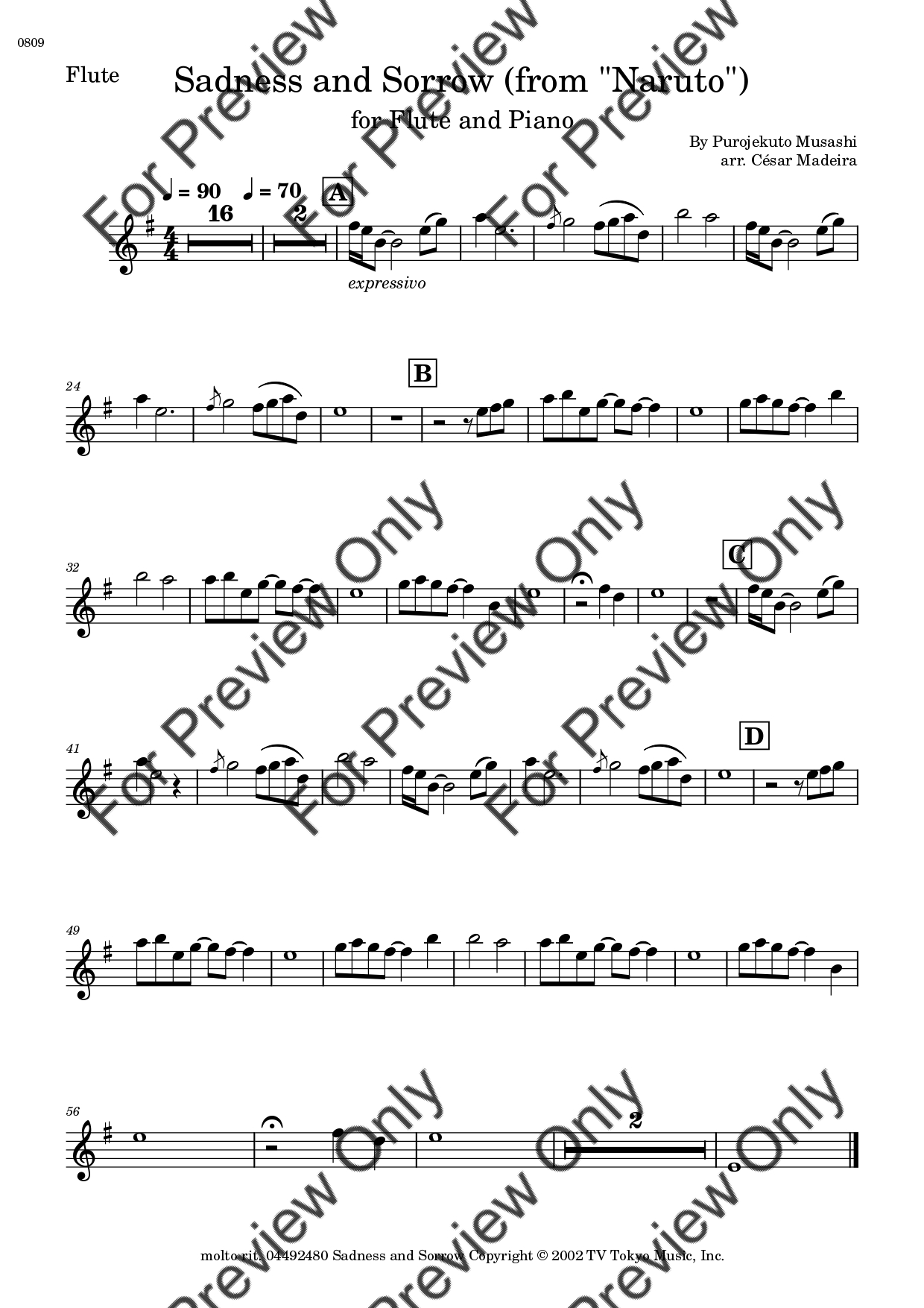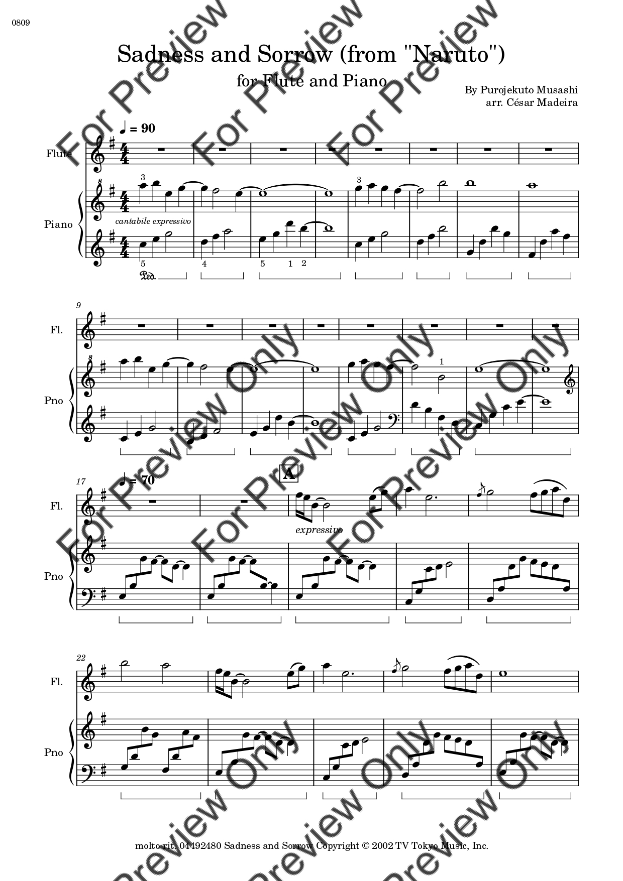 Sadness and Sorrow from Naruto. Arrangement for Flute and Piano. With Full Score and Individual Parts. Have fun!