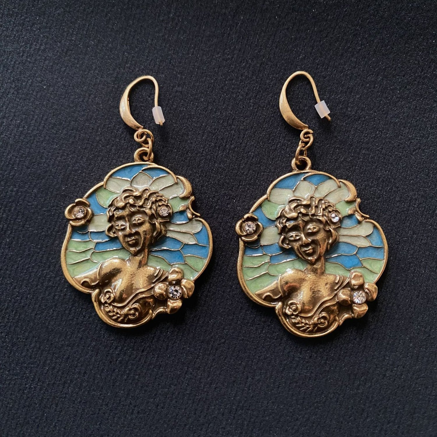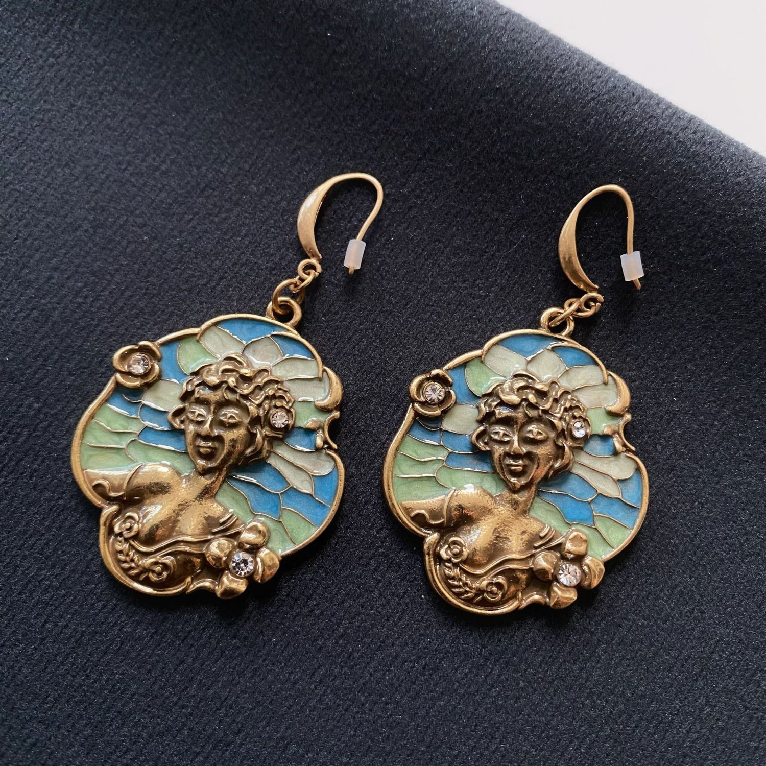Antique style vintage medieval human head enamel drop earrings