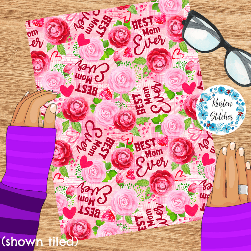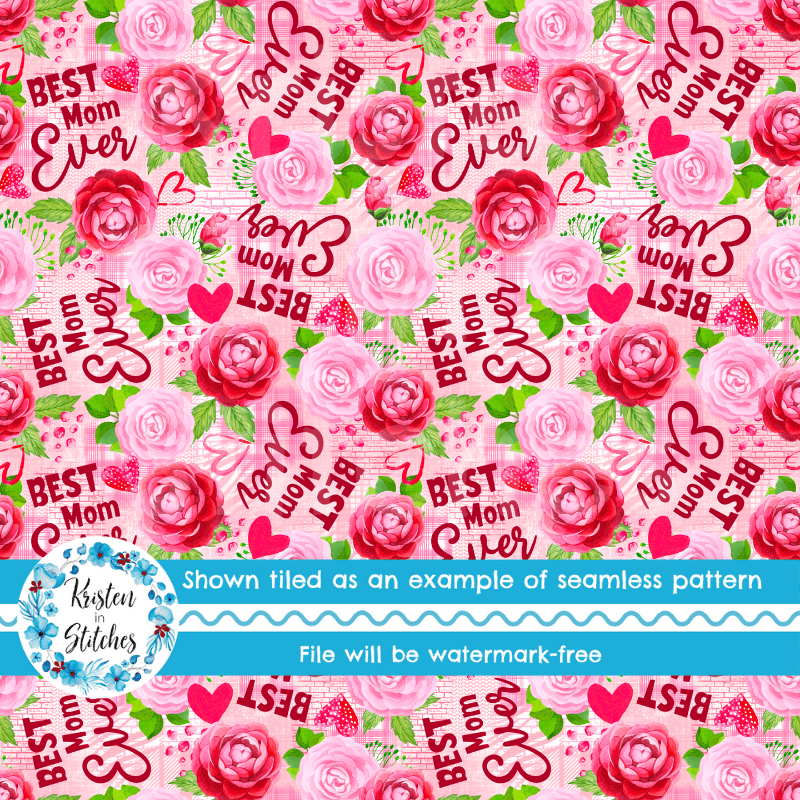 Best Mom Ever Mother's Day Floral Seamless Pattern, Pink