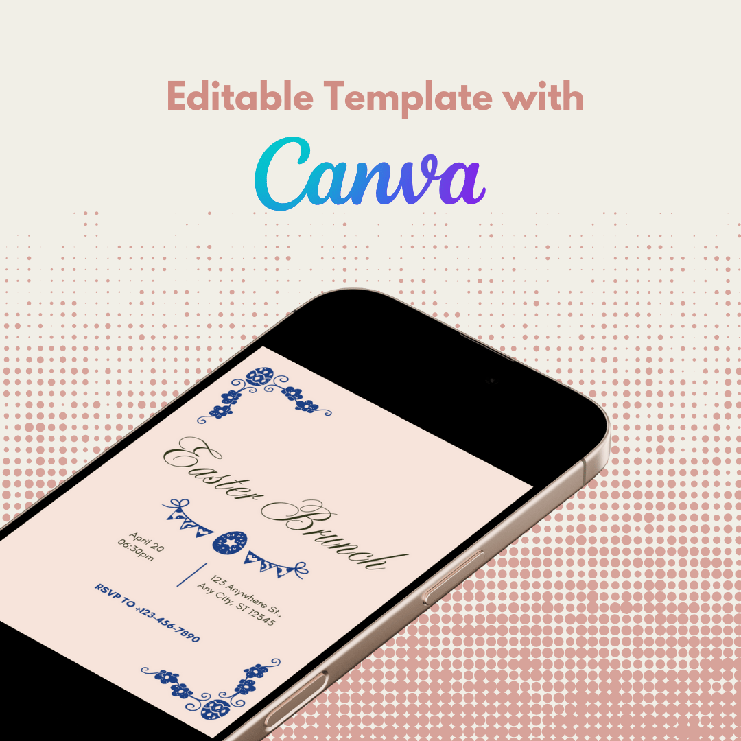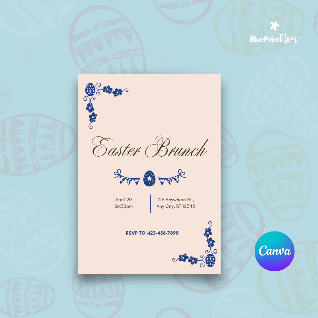 [FREE] Simple Blue Classic Invitation for Easter Brunch Editable Canva Design Template