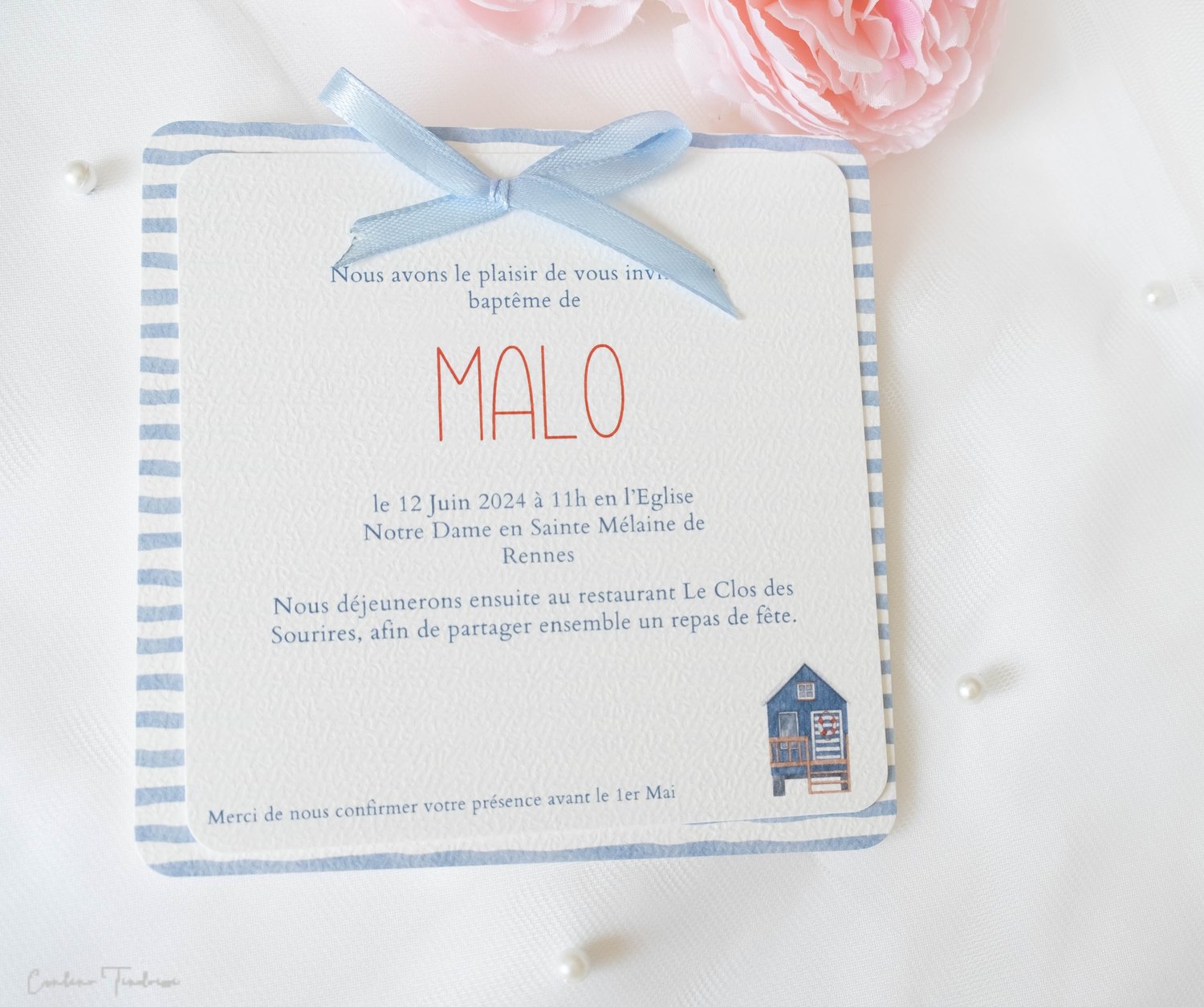 – Illustration du faire-part : plusieurs motifs au choix (à définir ensemble selon maquette) : phare, banc de poisson, cabane de plage...