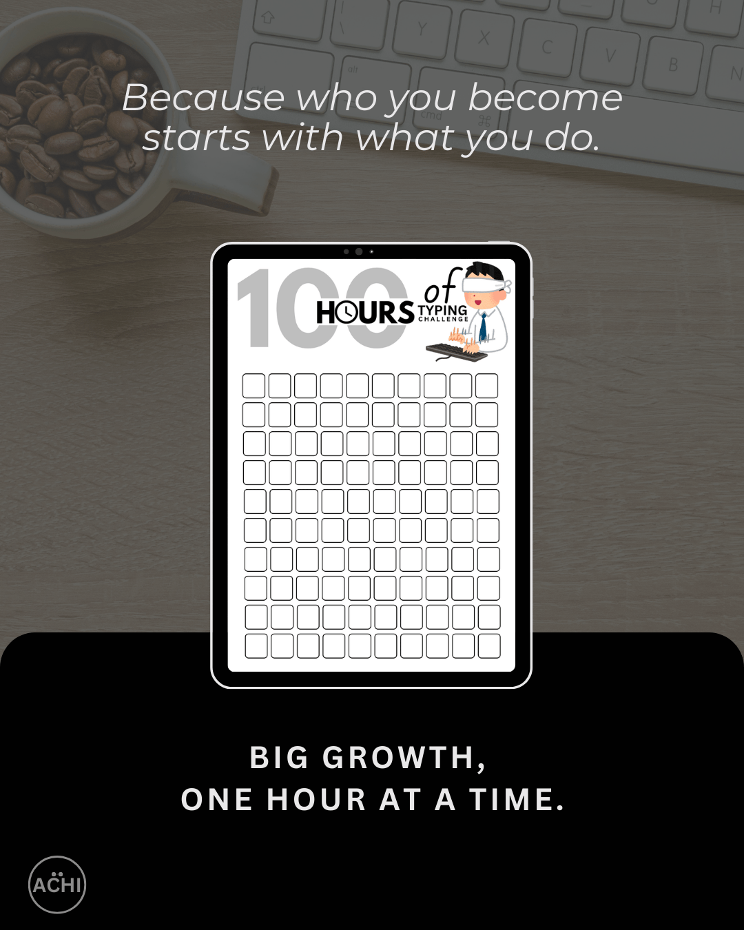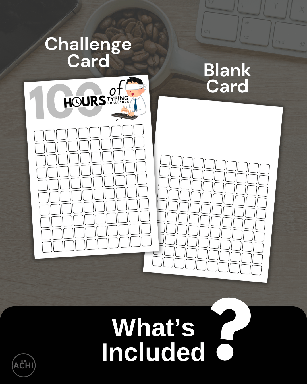 Speed up your computer typing skills using this 100 Hours of Typing Challenge Card — because growth happens one challenge at a time.