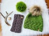 This is an instant download PDF pattern for the Fern Path Headband and Brimless Beanie.