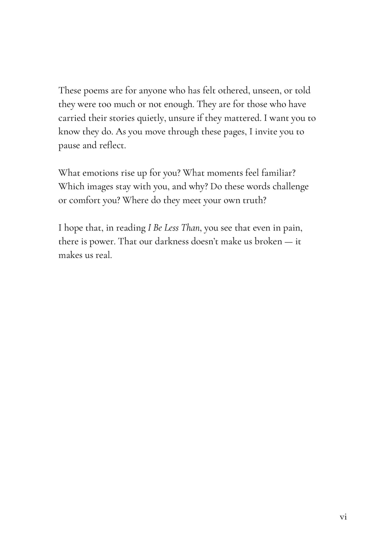 I Be Less Than: A Collection of Poems about Power, Pain, and Resilience