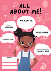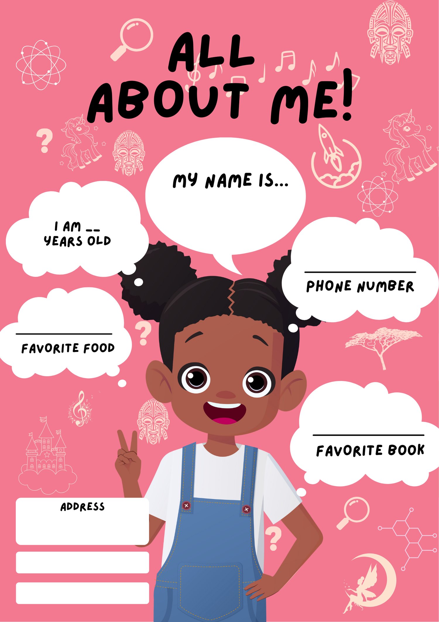 Help children express themselves with this engaging All About Me worksheet! Perfect for the first week of school, homeschool introductions, or memory keepsakes, this printable lets kids share their name, age, favorite food, favorite book, phone number, and address.