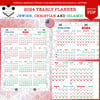 The Christian (Gregorian) calendar is used world-wide as the universal calendar for business, much like English is a universal business language. The Jewish and Islamic calendars are still in use today by members of those faiths and in certain countries. As a result, calendars combining one of these with the Gregorian calendar are readily available, but this calendar combines all three so we can all use the same one.