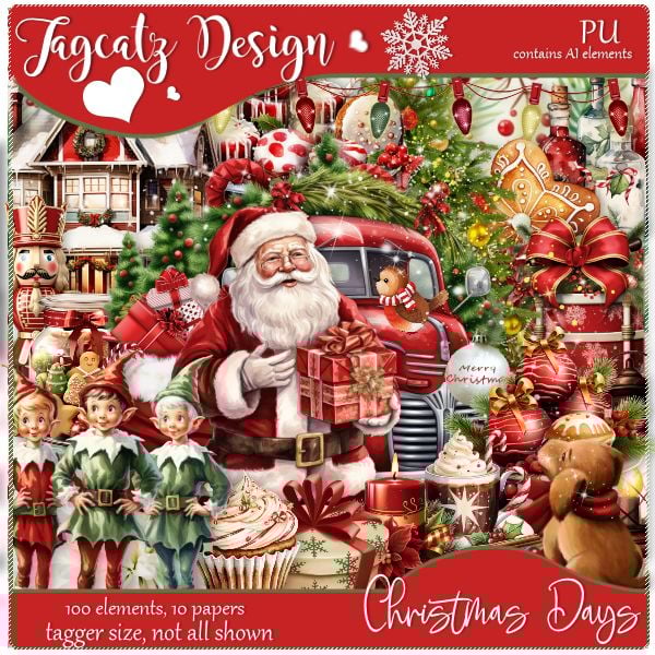 Santa, the elves, the gifts, the food, the tree....all here in Christmas Days! 100 elements and 10 matching papers. Contains some AI elements. PU only.