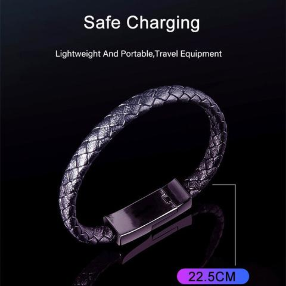 A charge-and-sync cable is hidden in a braided leather bracelet designed with the purpose to set your hands free from carrying any excess cords. Wear it every day with confidence and charm!