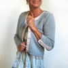 Knit from the top down with set-in sleeves for a perfect fit. All done without seaming! The main part is knit in plain stockinette stitch with tailored shaping and many options for every body. Buttoned shoulder patches and sleeve cuffs make this cardigan outstanding. The pattern is very detailed and will lead you through all steps.