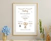 Celebrate the arrival of your little one with this editable baby birth announcement print. Featuring a sweet teddy bear in a balloon basket with soft blue and neutral tones, this A4 digital template makes a perfect keepsake and nursery wall art.