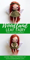 The Woodland Leaf Fairy’s PDF pattern file includes complete written instructions for the doll-making process, visual references for the crocheted parts, and a detailed hair tutorial.
