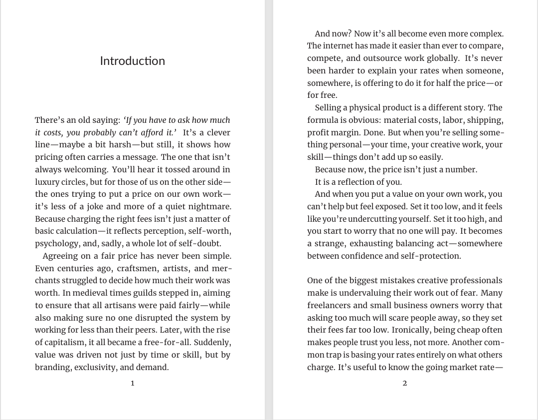 Pocket-sized by design but packed with what matters, this book includes a brand-new second part with practical example pricing, real-world client situations, and rate breakdowns to help you put everything into action.