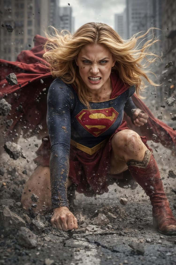 Hope has a silhouette—and in this 14K ultra-high-resolution Supergirl artwork, it rises over the city like a promise.