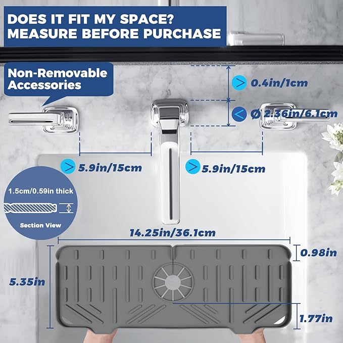 - Faster Drying: Enhanced with a 5° slope design for quicker water drainage and drying, preventing puddles and water spots around the faucet.