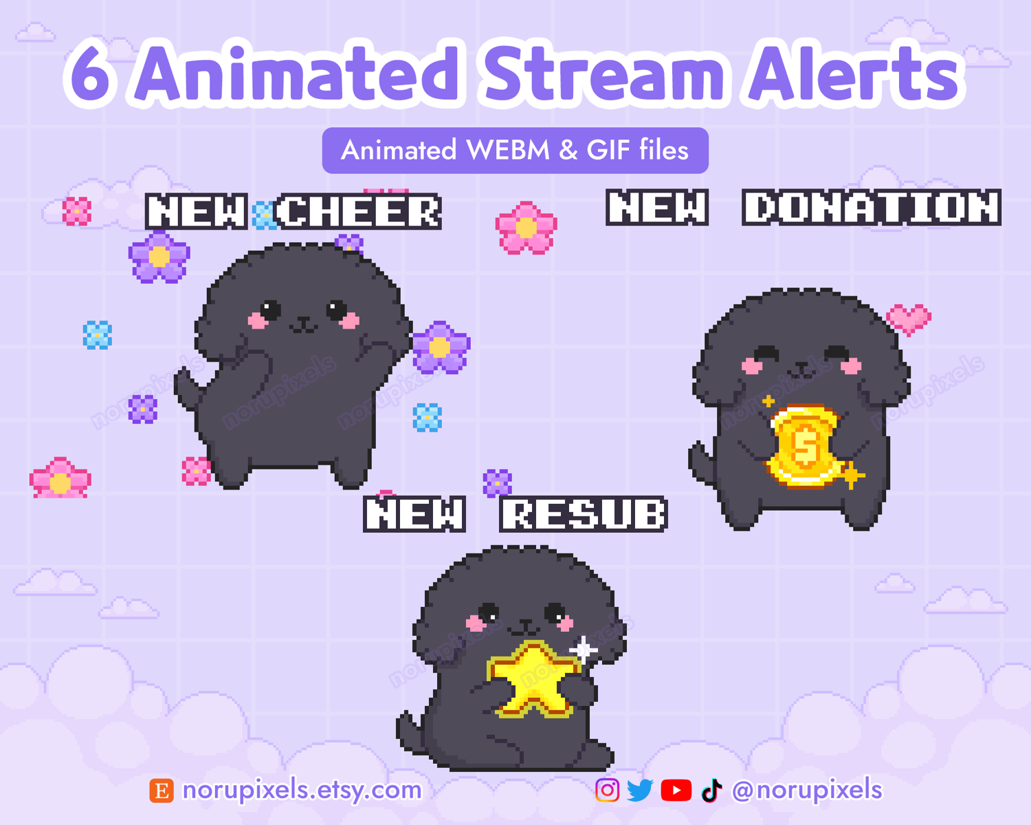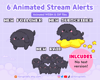 6 Animated Black Poodle Stream Alerts Pack