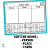 Noun sort activity is fun and engaging. This sorting activity is a good addition to Parts of speech lessons, to review the nouns or to reinforce the noun sort skill. It's perfect for independent work, early finishers and small groups.