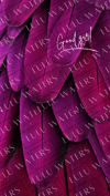 Magenta bird feathers. Brightened filter. Good girl insignia in upper right corner.