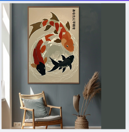 Digital Wall Art with Japanese Koi Fish, Printable Art, Koi Fish Decor, Zen Art, Japanese Style, Home Wall Art