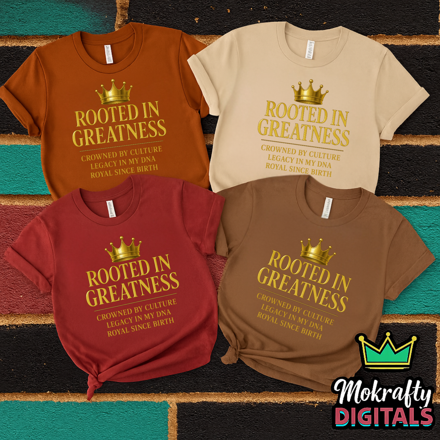 Celebrate your heritage and inner royalty with this stunning digital design. Featuring a powerful message and a beautiful crown graphic, this PNG file is perfect for creating custom apparel, mugs, posters, and more.