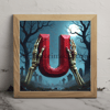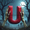 The letter U ruby halloween skull