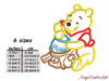 Winnie APPLIQUE, Winnie Honey Embroidery Design, 6 sizes, Instant Download