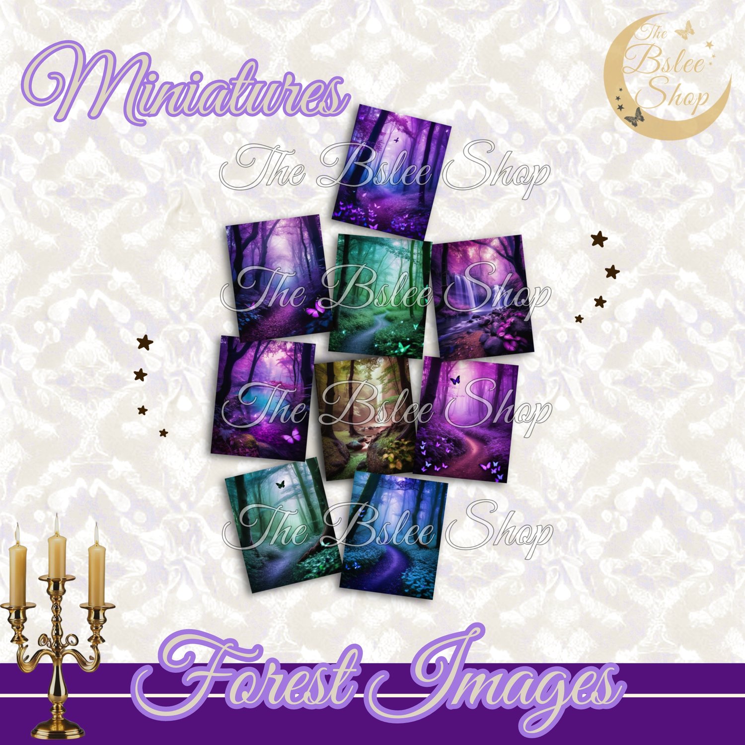 This is a set of miniature whimsy forest cards for your Dollhouse, Diorama or other crafts such as scrapbooking and collage. You will get 2 sizes and can scale down the file if you require a smaller size. Save time by instantly downloading the item, there is no shipping cost!