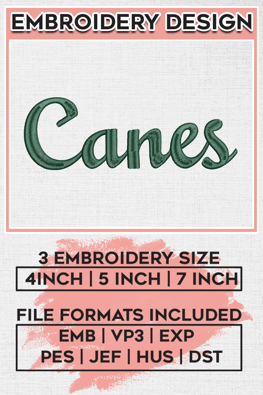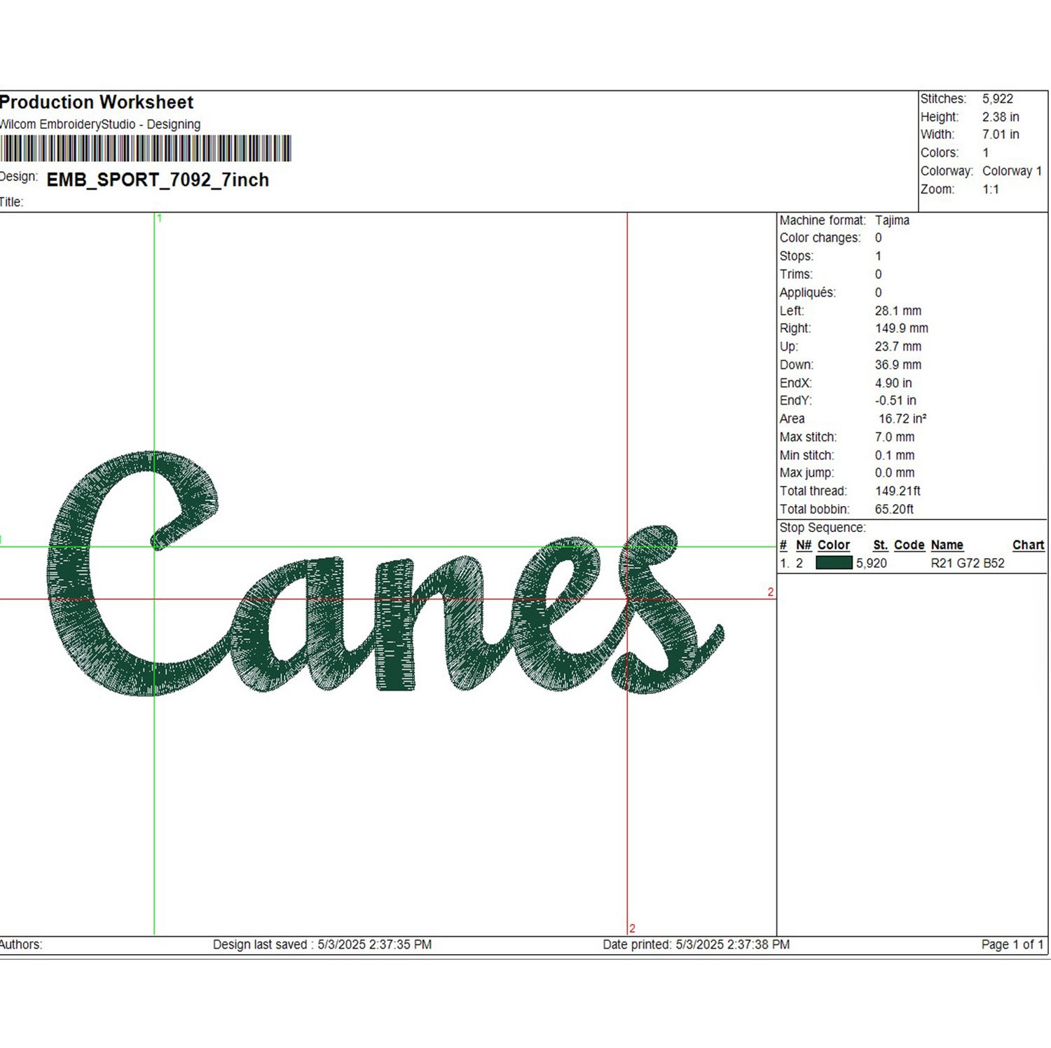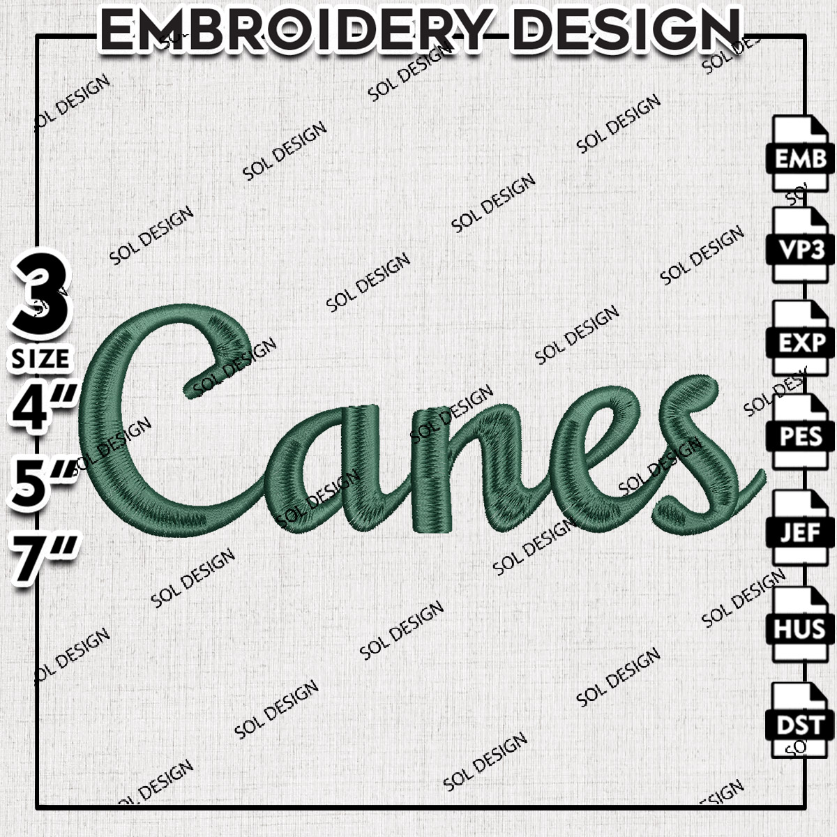 Canes NCAA Football Team Writing Logo Embroidery Designs, NCAA Miami Hurricanes Machine Embroidery Files, NCAA Logo embroidery designs, Ncaa Hurricanes Logo, Digital Download